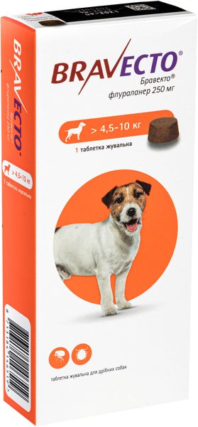 - Жевательная таблетка Bravecto (Бравекто) от блох и клещей для собак 4.5-10 кг