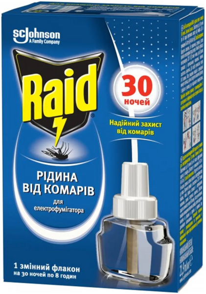 Жидкость от комаров Raid для электрофумигаторов 30 ночей 22мл