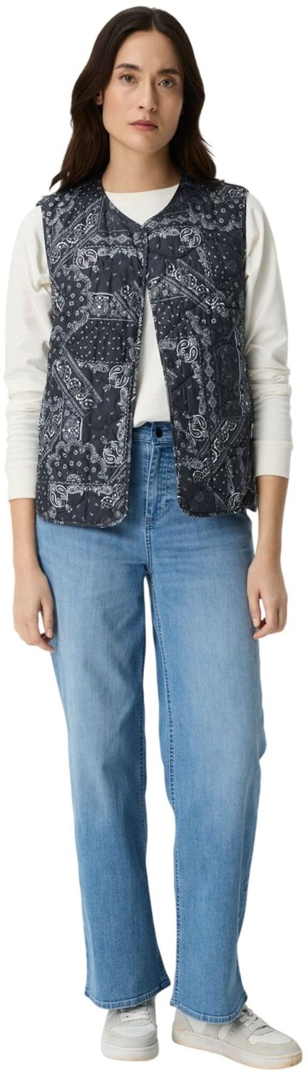 Этот утепленный жилет прямого кроя отличается лаконичным, непринужденным силуэтом. Ткань тафта обеспечивает мягкость на ощупь, а удлиненный закругленный низ и боковые карманы добавляют функциональных акцентов. Благодаря отсутствию воротника и лаконичному дизайну он идеально подходит для многослойных образов.