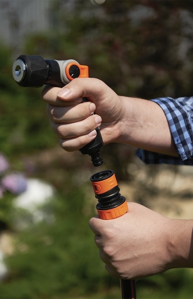 Это пистолетный ручной ороситель для удобного и точного полива растений в саду, на огороде или возле дома. Пистолетная форма обеспечивает комфорт и позволяет легко управлять подачей воды одной рукой. Два режима полива позволяют выбрать подходящий тип струи - от мягкого распыления для деликатных растений до более интенсивной струи для полива или мытья. Регулировка напора воды позволяет точно настроить силу подачи под конкретную задачу. Комбинированный корпус из пластика и цинка обеспечивает повышенную прочность и долговечность, а вес 0,4 кг добавляет ощущение надежности во время работы.