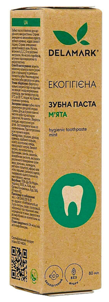- Зубная паста гигиеническая DeLaMark с ароматом мяты 80 мл (4820152332004)