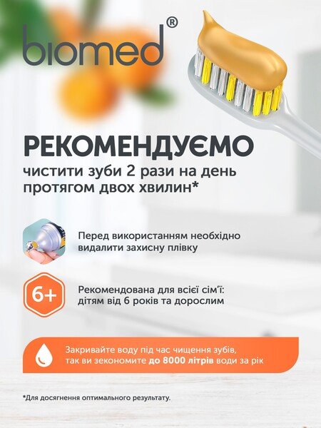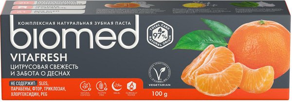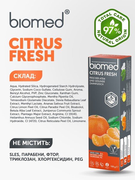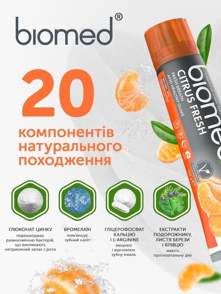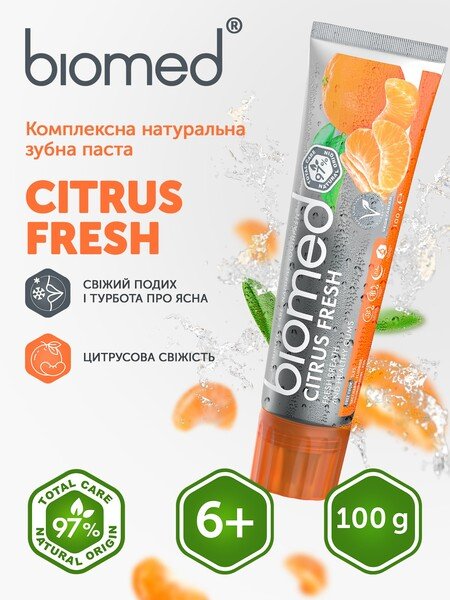 Зубная паста BioMed Citrus Fresh Антибактериальная для свежести дыхания и укрепления эмали 100г.