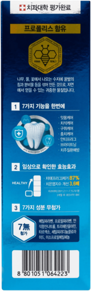 | Состав | Blue 1(Cl 42090), Cl 73000,Gold (Cl77480), Citrus Limon(Lemon), Fruit Extract, Propolis Extract, Camelia Sinensis Leaf Extract, Iron Oxide (Cl77499), Red 30 (Cl73360), Sea Salt (Maris Sal), Aloe Barbadensis Leaf Juise, Melaleuca Altemifolia(Tea Tree),Flover/Leaf/Stem Extract, Betula Alba Juice, Water (Aqua), Sorbitol, Hydrated Silica, Sodium Lauryl Sulfate, Glycerin, Celulose Gum, Flavor (Aroma), Tetrasodium Pyrophosphate, Sorbitan Oleate, Sodium Fluoride, Sodium Saccharin, Xanthan Gum, Celulose, MagnoliaOfficiales Bark Extract, Mannitol, Hydroxypropyl Methylcelulose, Com Starch Modifed, Mentol, Titanium Dioxide (Cl 77891), Iron Oxyde (Cl 77492) |