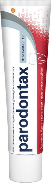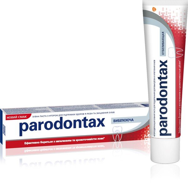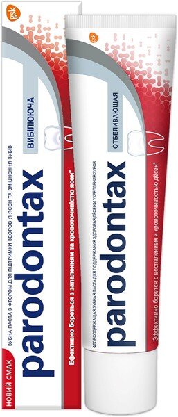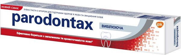 Зубная паста Пародонтакс Отбеливающая аккуратно удаляет налет с зубов, помогая восстановить их естественную белизну, одновременно помогая устранить кровоточивость десен.