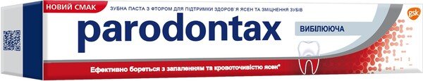 Убирая зубной налет вдоль линии десен, зубная паста Пародонтакс помогает обеспечить плотное прилегание десен к зубам. Зубная паста Пародонтакс борется с основной причиной кровоточивости десен в 4 раза эффективнее, чем обычная зубная паста, не содержащая бикарбонат натрия. Клинически доказано, что при использовании два раза в день она помогает предотвратить и предупредить кровоточивость десен.