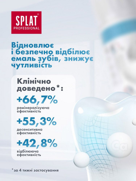 - Высокое содержание активных компонентов позволяет укрепить эмаль и снизить повышенную чувствительность зубов уже после нескольких дней использования.