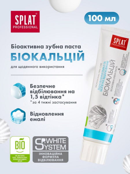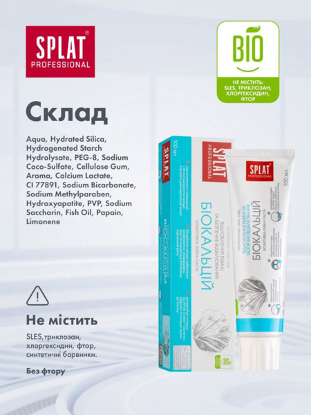 - Комплексная зубная паста с биоактивным Кальцисом, полученным из яичной скорлупы, и гидроксиапатитом – строительным веществом твердых тканей зуба.