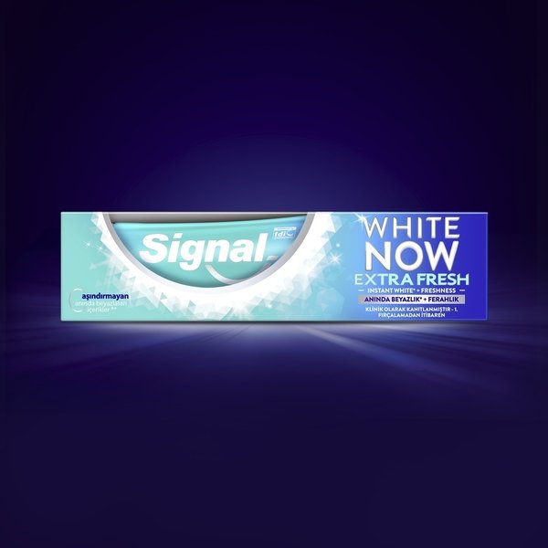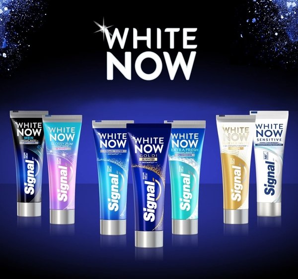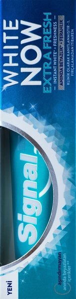 Отбеливающая паста Signal надежно защищает зубы от кариеса, тщательно их очищает, устраняет налет, заметно отбеливает и приятно освежает