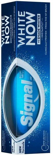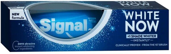 Отбеливающая паста Signal эффективно защищает зубы от кариеса, тщательно очищает их, удаляет налет, способствует отбеливанию и дарит приятное ощущение свежести. Она бережно очищает и укрепляет эмаль, предотвращая развитие кариеса. Современная биоформула для отбеливания эффективно устраняет желтизну и налет, улучшая состояние эмали и придавая зубам привлекательный вид, а дыханию — свежесть.