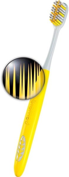 - Утонченная форма щетинок очищает места, где наиболее часто образуется кариес: межзубные промежутки, углубления жевательных поверхностей, придесневые участки. Не травмирует десны