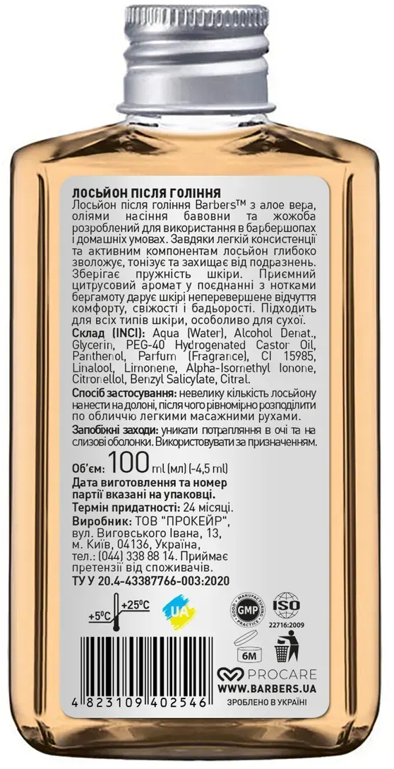 - Увлажняющий лосьон после бритья Barbers Manchester 100 мл