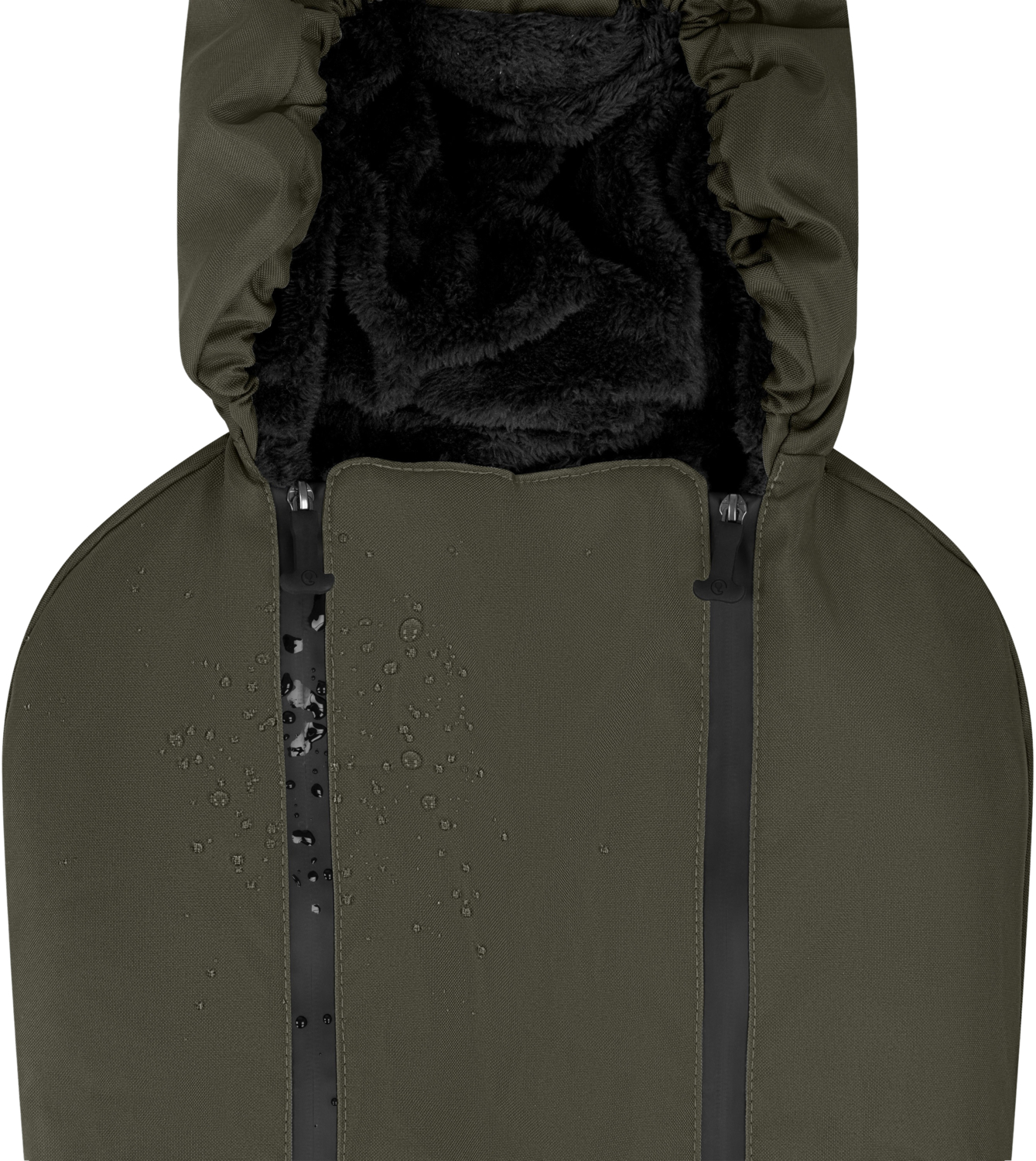 Удобный капюшон защищает особо чувствительную головку ребенка от холода и сквозняков. Его можно сложить и индивидуально отрегулировать с помощью эластичной ленты. Шнурок капюшона безопасно хранится в небольшом встроенном кармане.