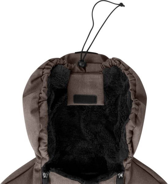 Удобный капюшон защищает особо чувствительную головку ребенка от холода и сквозняков. Его можно сложить и индивидуально отрегулировать с помощью эластичной ленты. Шнурок капюшона безопасно хранится в небольшом встроенном кармане.
